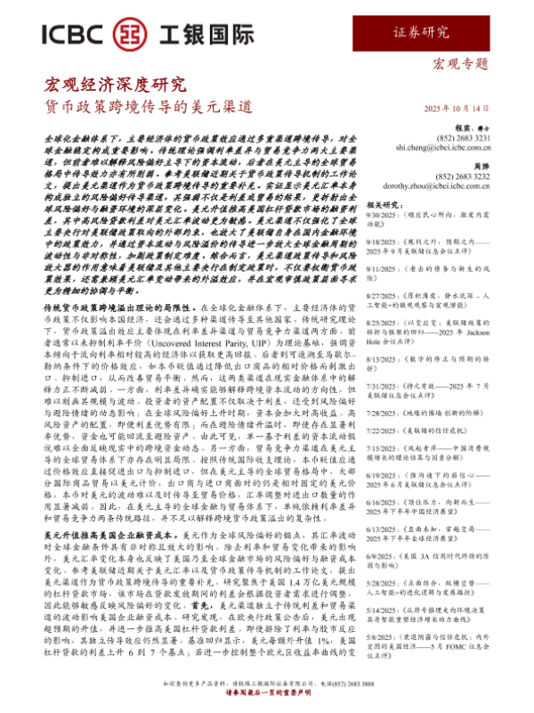 【工银国际】【202510】货币政策跨境传导的美元渠道-4页 证券期货研究报告