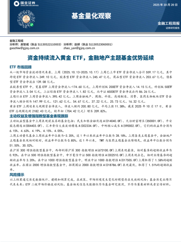 【国金证券】【202510】基金量化观察:资金持续流入黄金ETF,金融地产主题基金优势延续-11页 证券期货研究报告