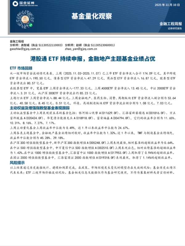【国金证券】【202511】基金量化观察:港股通ETF持续申报,金融地产主题基金业绩占优-11页 证券期货研究报告