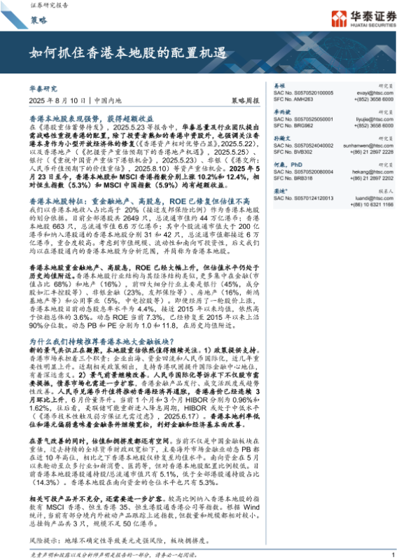 【华泰证券】【20250810】如何抓住香港本地股的配置机遇-18页 宏观策略