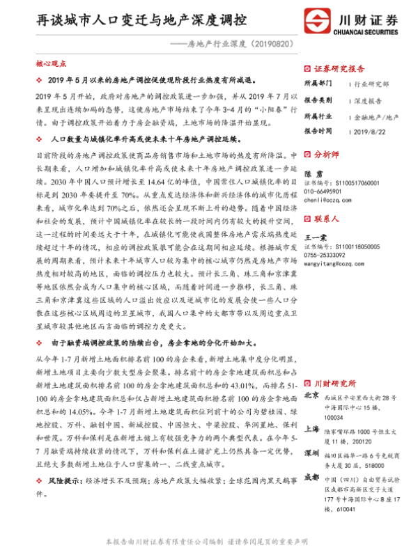 【川财证券】【20190822】再谈城市人口变迁与地产深度调控-29页 行业研究
