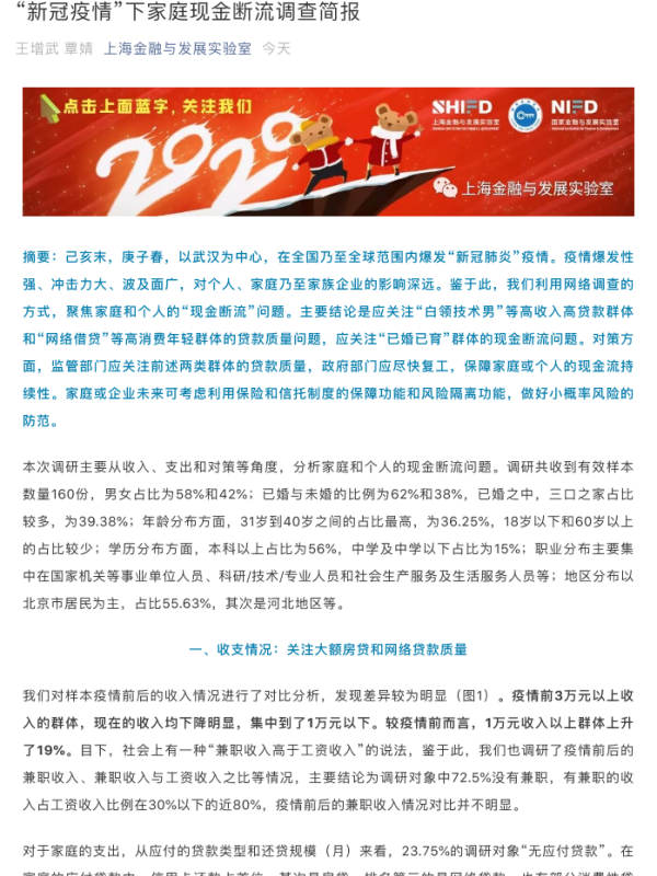 【国家金融与发展实验室财富管理中心】【2020】“新冠疫情”下家庭现金金断流调查简报-5页 市场调研