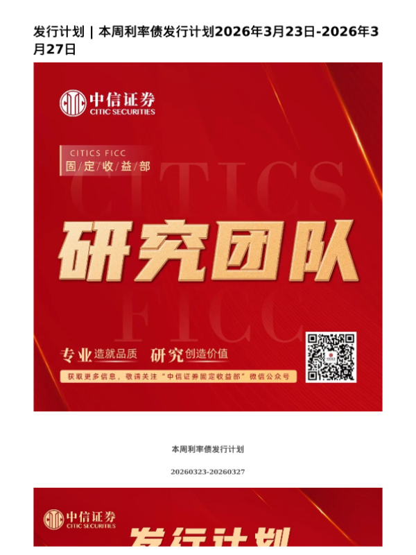 【中信证券】【202603】本周利率债发行计划2026年3月23日-2026年3月27日-4页 行业研究