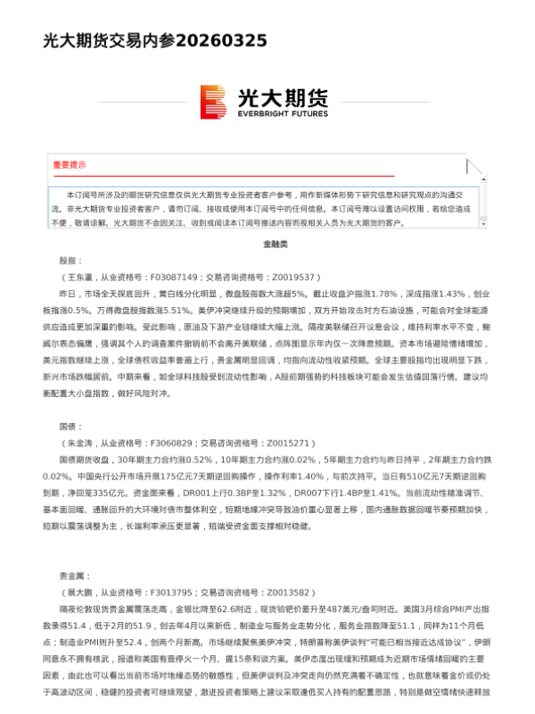 【光大期货】【202603】光大期货交易内参20260325-10页 证券期货研究报告