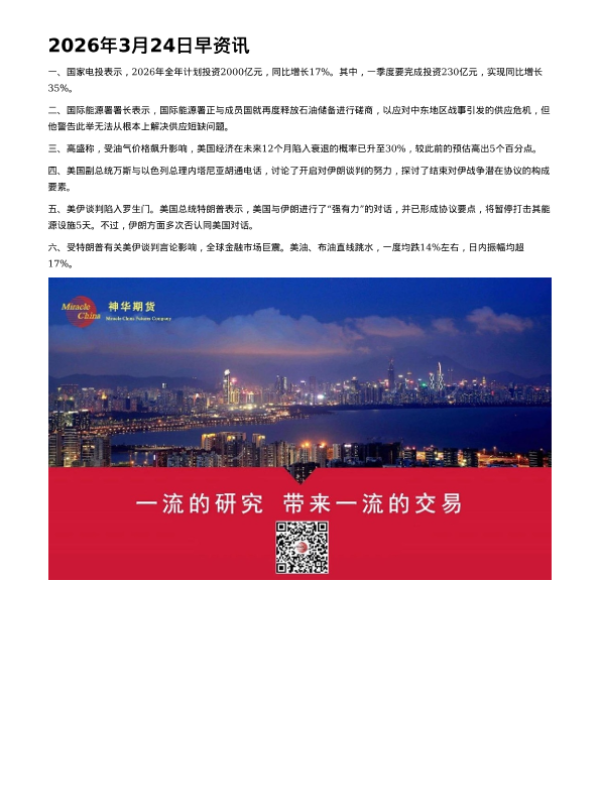 【神华期货】【202603】2026年3月24日早资讯-1页 证券期货研究报告