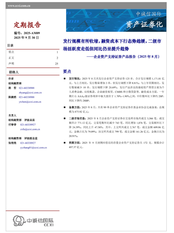 【中诚信国际】【202509】企业资产支持证券产品报告(2025年 8月)-25页 证券期货研究报告