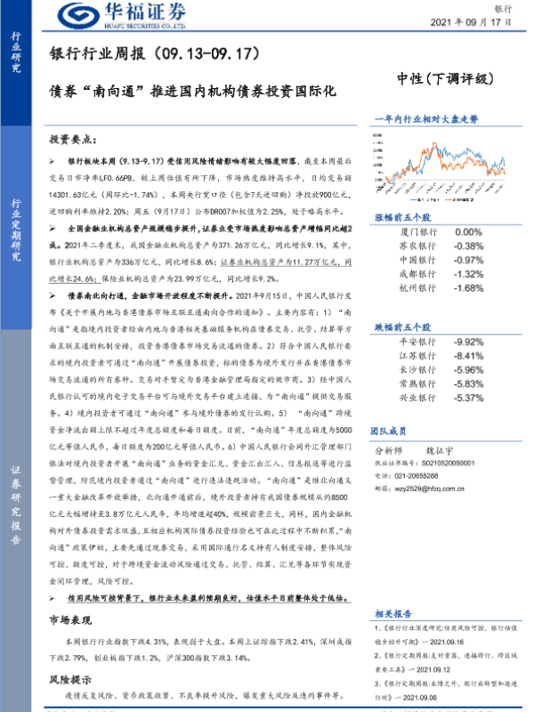 【华福证券】【20210917】银行行业周报:债券“南向通”推进国内机构债券投资国际化-18页 行业研究