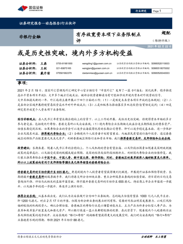 【国信证券】【20210222】非银行金融:有序放宽资本项下业务限制点评-8页 行业研究