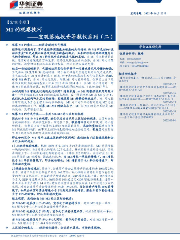 【华创证券】【20220622】【宏观专题】宏观落地投资导航仪系列(二):M1的观察技巧-18页 宏观策略