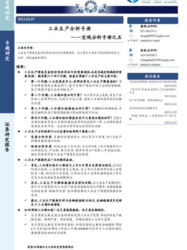 【国泰君安证券】【20220207】工业生产分析手册 ——宏观分析手册之五-21页 宏观策略