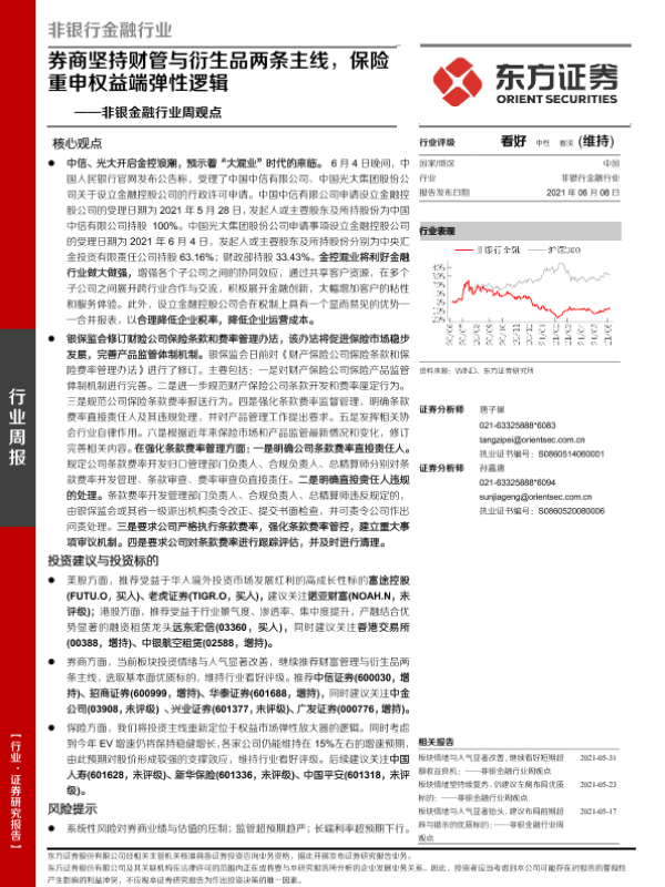 【东方证券】【20210608】非银金融行业周观点:券商坚持财管与衍生品两条主线,保险重申权益端弹性逻辑-14页 行业研究