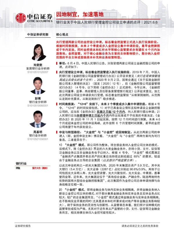 【中信证券】【20210606】关于中国人民银行受理金控公司设立申请的点评-3页 行业研究