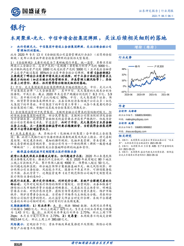 【国盛证券】【20210606】本周聚焦-光大、中信申请金控集团牌照,关注后续相关细则的落地-11页 行业研究
