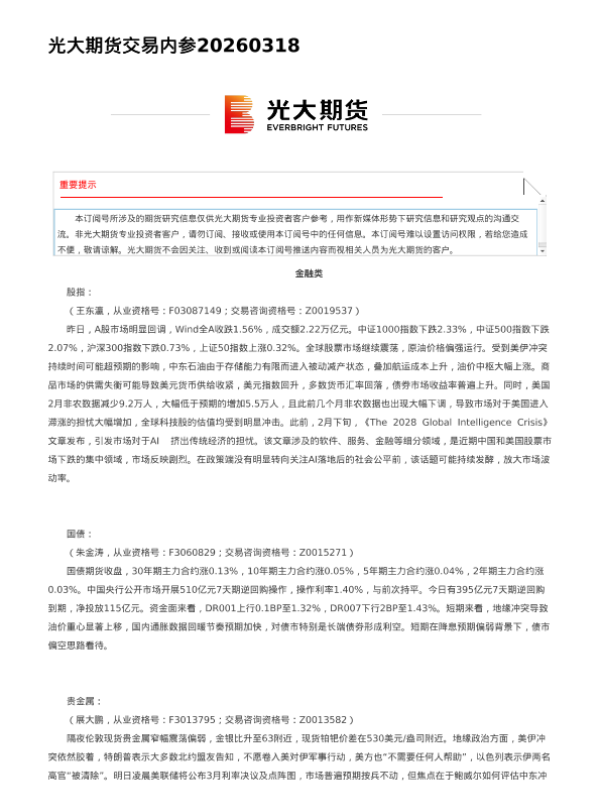 【光大期货】【202603】光大期货交易内参20260318-10页 证券期货研究报告