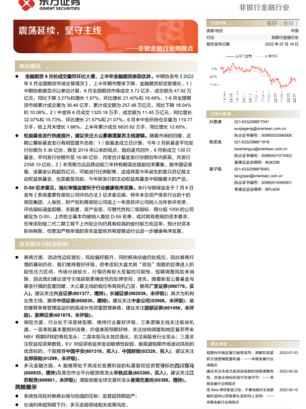 【东方证券】【20220710】非银金融行业周观点:震荡延续,坚守主线-13页 行业研究