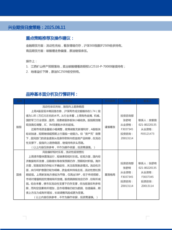 【兴业期货】【20250811】兴业期货-日度策略-6页 证券期货研究报告