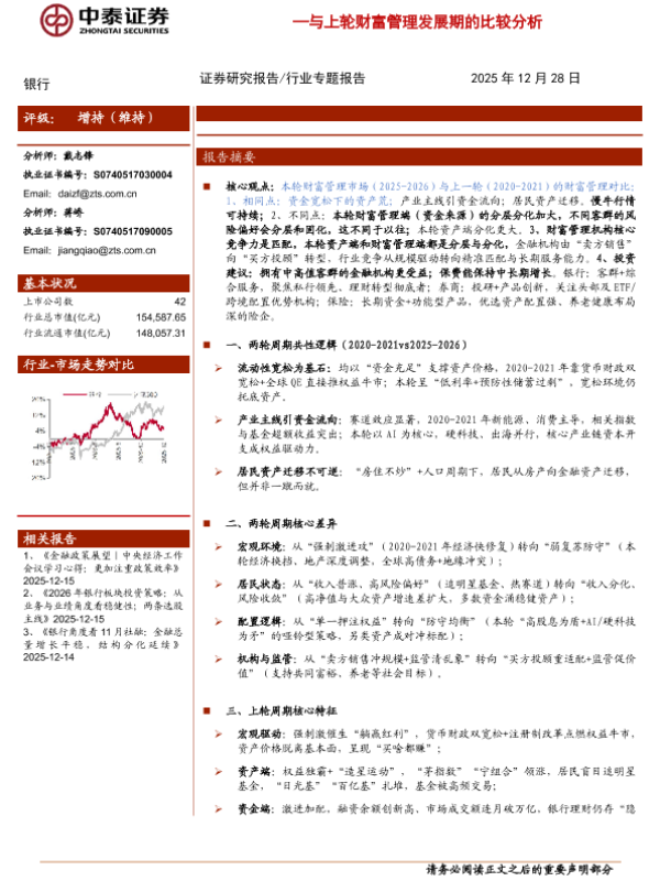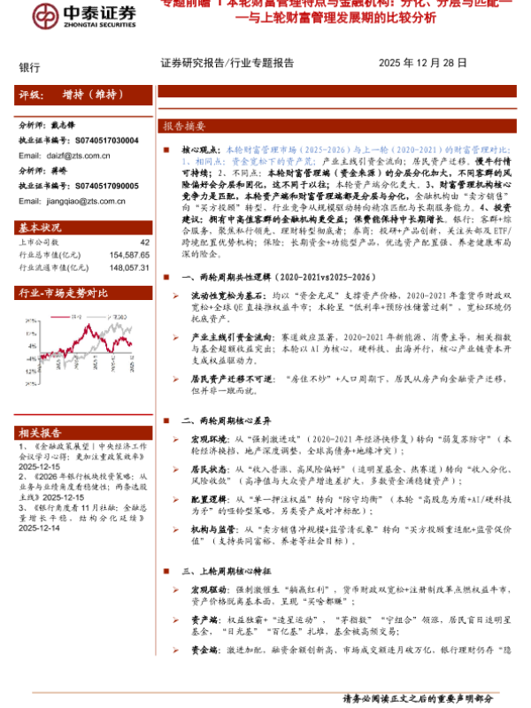 【中泰证券】【202512】银行业与上轮财富管理发展期的比较分析:专题前瞻|本轮财富管理特点与金融机构,分化、分层与匹配-27页 证券期货研究报告