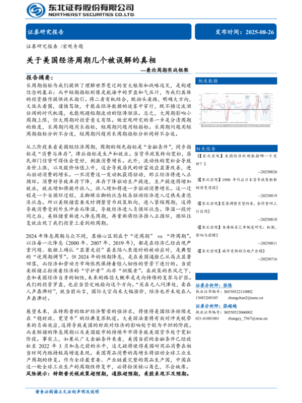 【东北证券】【20250826】关于美国经济周期几个被误解的真相-兼论周期实战框架-30页 证券期货研究报告