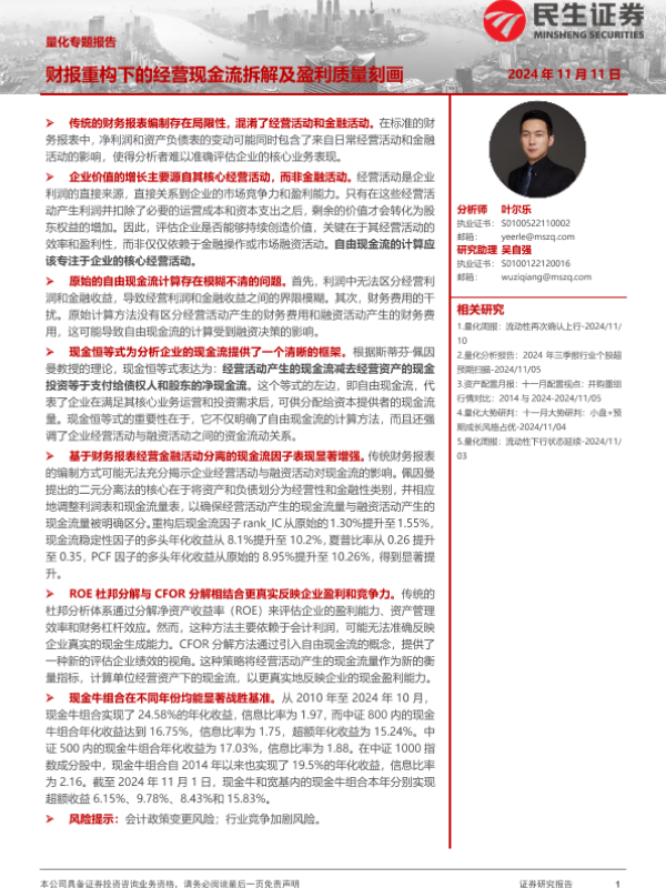 【民生证券】【20241111】量化专题报告:财报重构下的经营现金流拆解及盈利质量刻画-40页 行业研究