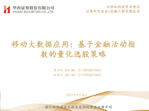 【华西证券】【20210926】移动大数据应用:基于金融活动指数的量化选股策略-22页 行业研究