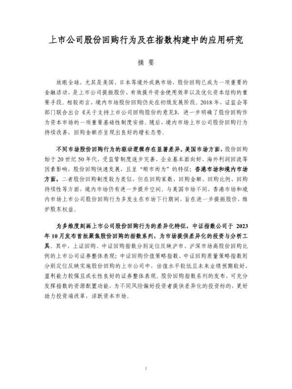 【中证指数】【202310】上市公司股份回购行为及在指数构建中的应用研究-24页 行业研究