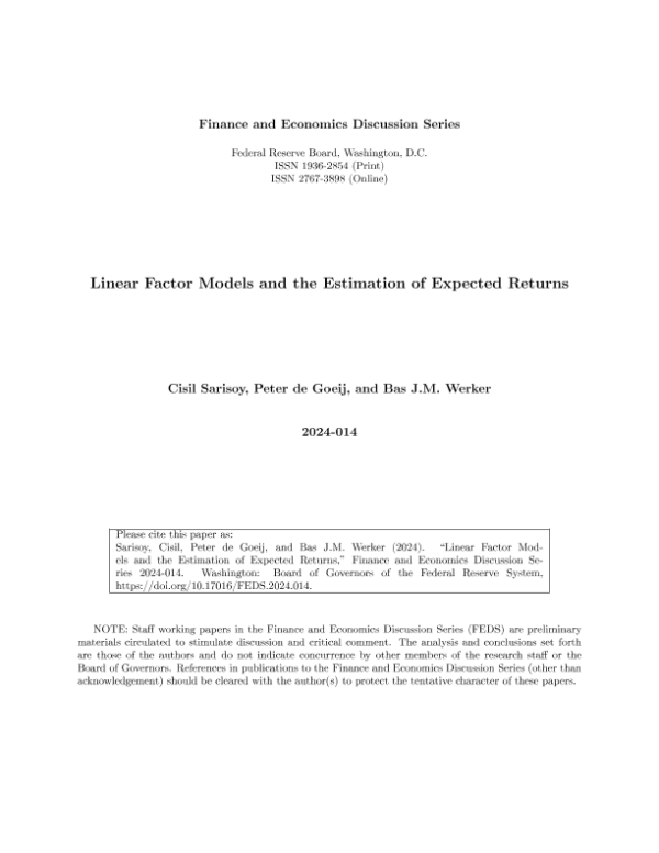 【Board of Governors of the Federal Reserve System】【20240301】Linear Factor Models and the Estimation of Expected Returns-54页 行业研究