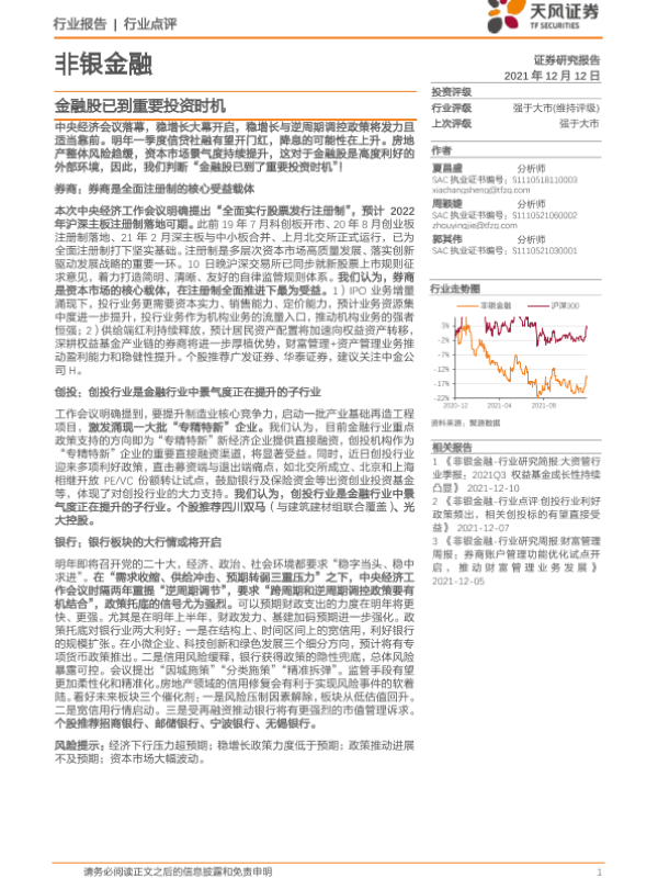 【天风证券】【20211212】非银金融:金融股已到重要投资时机-3页 行业研究
