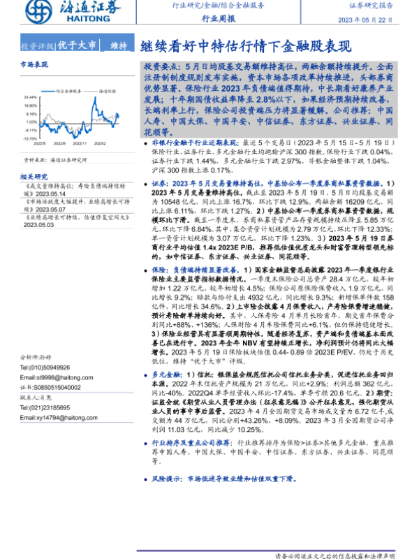 【海通证券】【20230522】综合金融服务行业周报:继续看好中特估行情下金融股表现-11页 行业研究