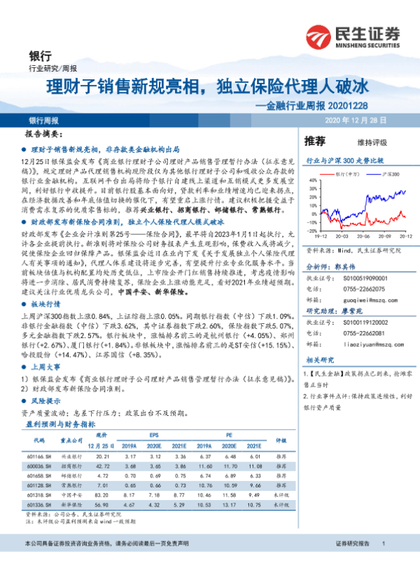 【民生证券】【20201228】理财子销售新规亮相,独立保险代理人破冰-23页 行业研究
