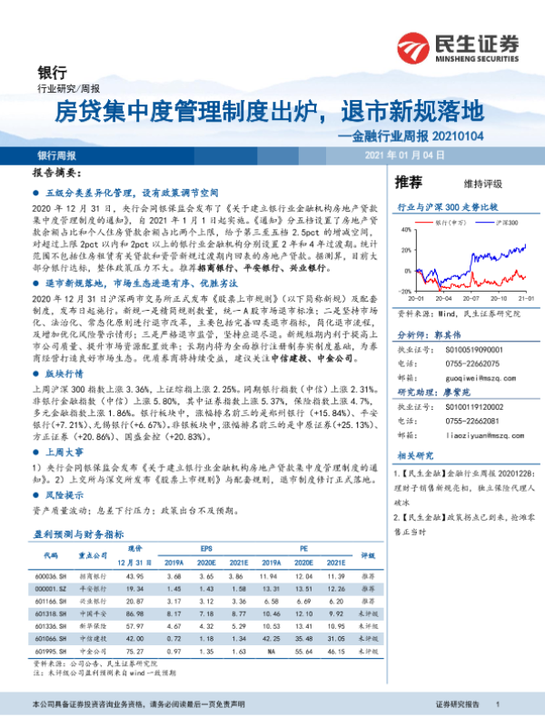 【民生证券】【20210104】房贷集中度管理制度出炉,退市新规落地-25页 行业研究