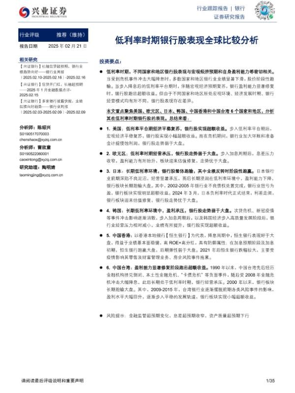 【兴业证券】【20250221】低利率时期银行股表现全球比较分析-35页 行业研究