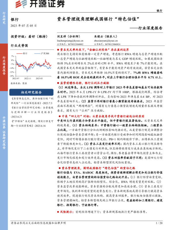 【开源证券】【20230706】资本管理视角理解我国银行“特色估值”——行业深度报告-20页 行业研究