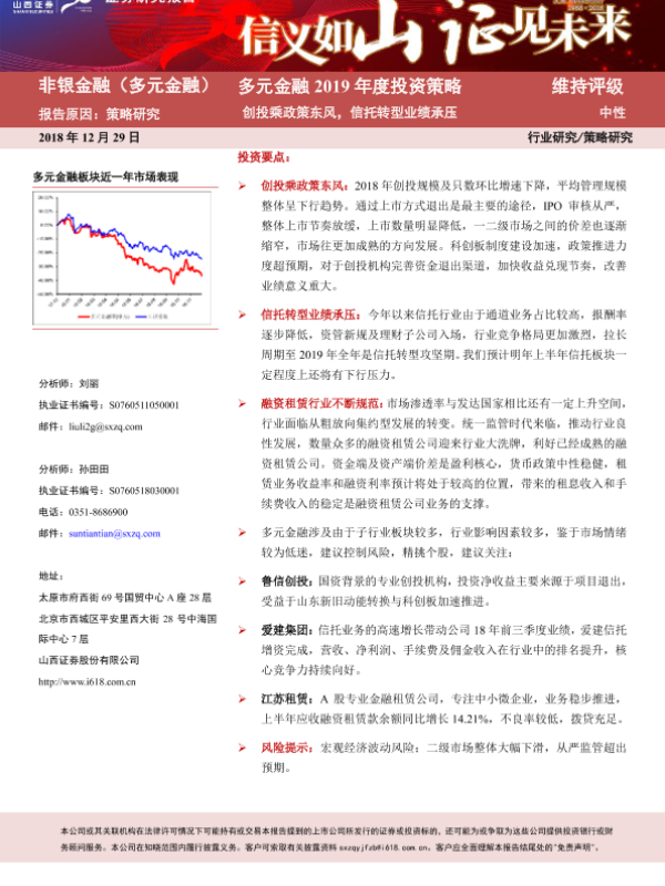 【山西证券】【20181229】多元金融2019年度投资策略:创投乘政策东风,信托转型业绩承压-30页 行业研究