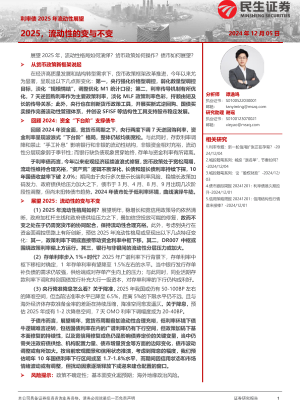 【民生证券】【20241205】利率债2025年流动性展望:2025,流动性的变与不变-22页 行业研究