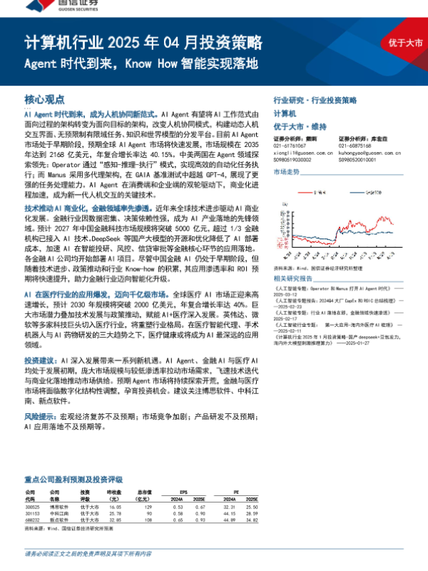 【国信证券】【202504】计算机行业2025年04月投资策略:Agent时代到来,Know+How智能实现落地-19页 证券期货研究报告