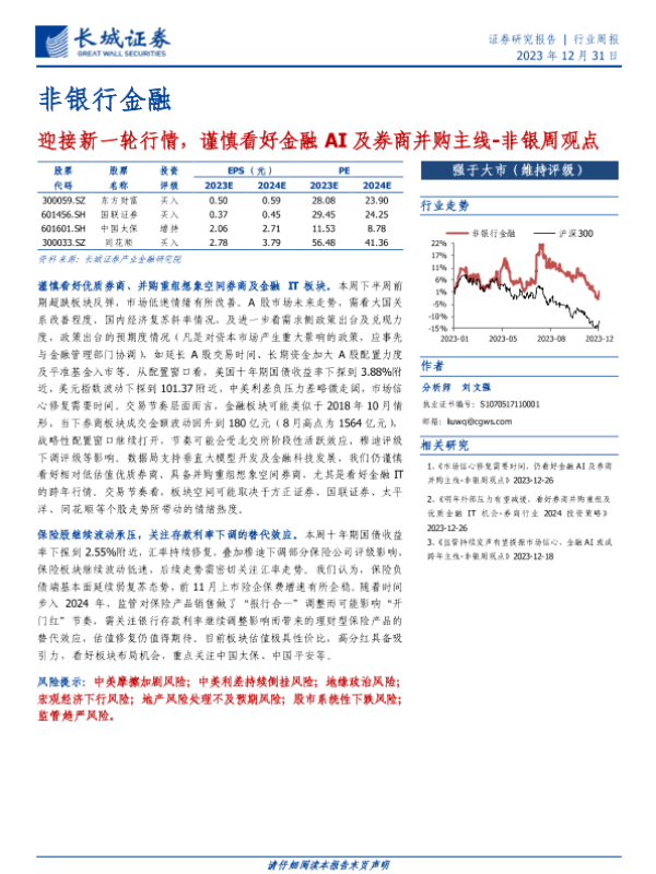 【长城证券】【20231231】迎接新一轮行情,谨慎看好金融AI及券商并购主线-30页 行业研究
