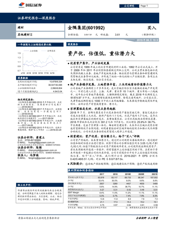【国信证券】【20190619】20190619-国信证券-金隅集团-601992.SH-资产优,估值低,重估潜力大-40页 行业研究