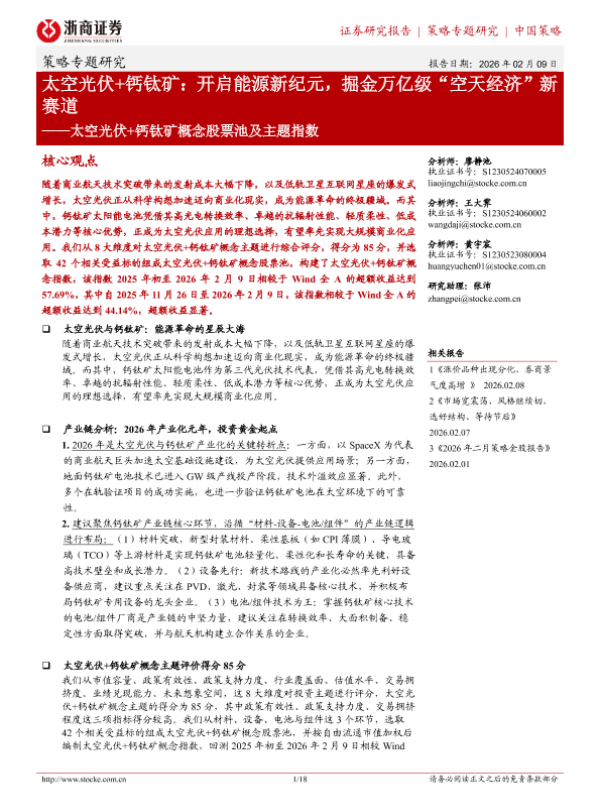 【浙商证券】【202602】太空光伏+钙钛矿:开启能源新纪元,掘金万亿级“空天经济”新赛道——太空光伏+钙钛矿概念股票池及主题指数-18页 证券期货研究报告