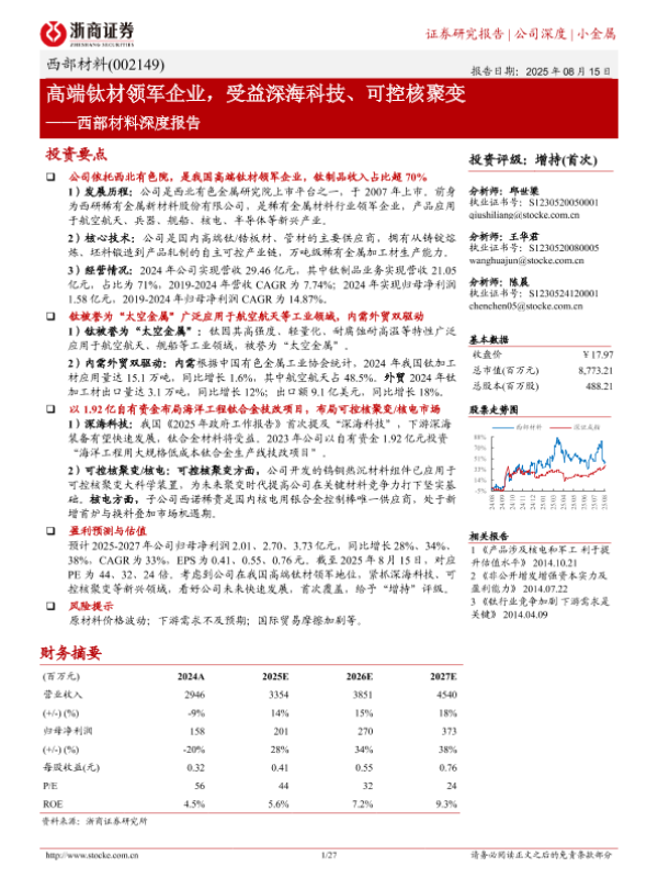 【浙商证券】【202508】高端钛材领军企业,受益深海科技、可控核聚变-27页 证券期货研究报告