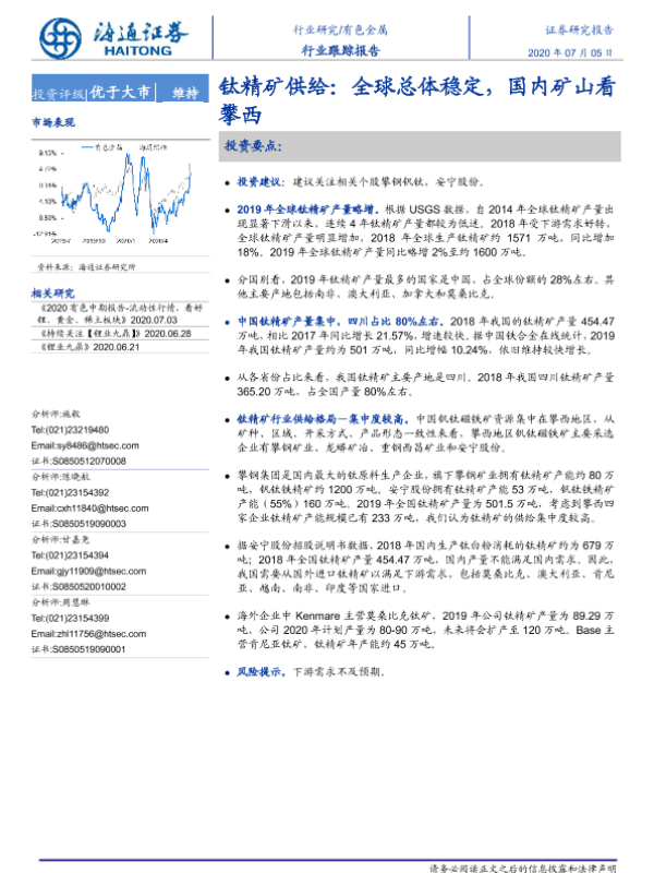 【海通证券】【20200705】钛精矿供给:全球总体稳定,国内矿山看攀西-5页 行业研究