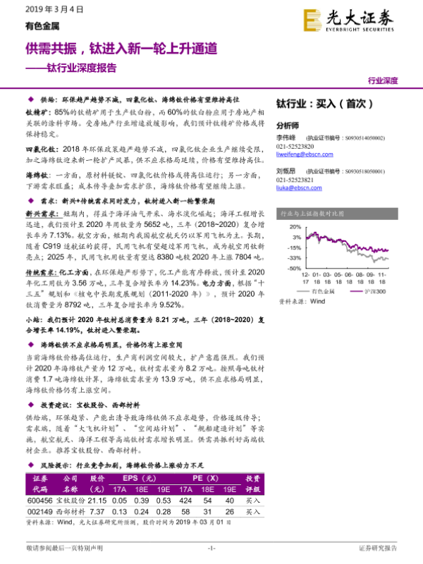 【光大证券】【20190304】20190304-光大证券-钛行业深度报告:供需共振,钛进入新一轮上升通道-35页 行业研究