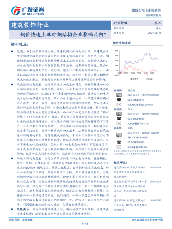 【广发证券】【20210516】钢价快速上涨对钢结构企业影响几何?-12页 行业研究