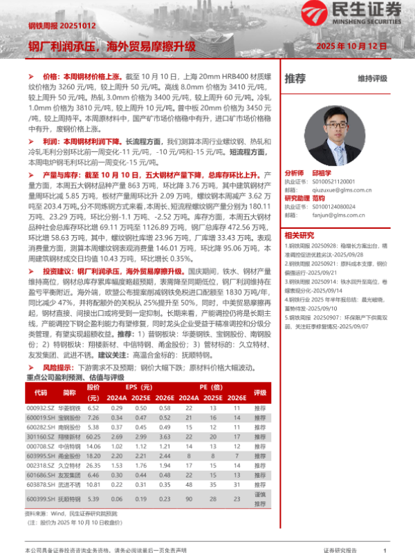 【民生证券】【202510】钢厂利润承压,海外贸易摩擦升级-20页 证券期货研究报告