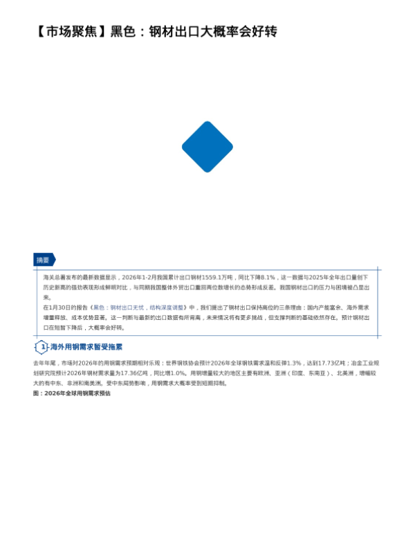 【中粮期货】【202603】【市场聚焦】黑色:钢材出口大概率会好转-5页 证券期货研究报告