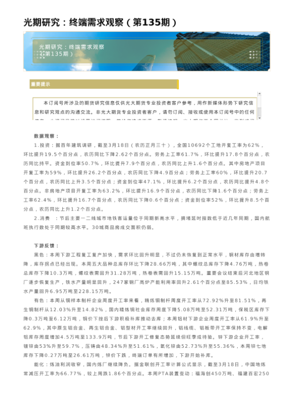 【光大期货】【202603】光期研究:终端需求观察(第135期)-13页 证券期货研究报告