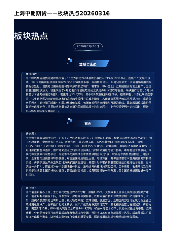 【上海中期期货】【202603】上海中期期货——板块热点20260316-4页 证券期货研究报告