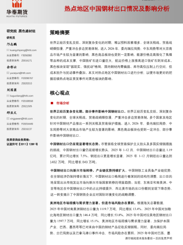 【华泰期货】【202603】热点地区中国钢材出口情况及影响分析-18页 证券期货研究报告