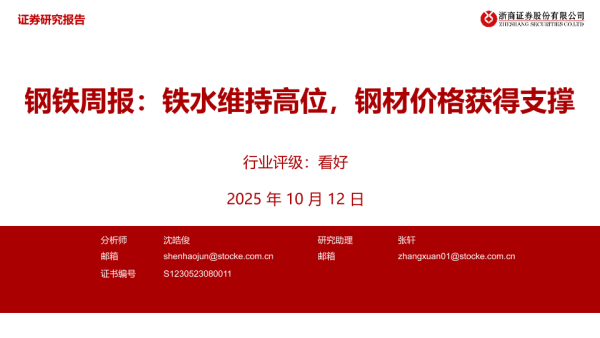 【浙商证券】【202510】钢铁周报:铁水维持高位,钢材价格获得支撑-11页 证券期货研究报告