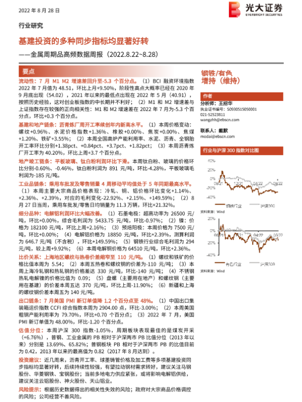 【光大证券】【20220828】金属周期品高频数据周报:基建投资的多种同步指标均显著好转-26页 行业研究