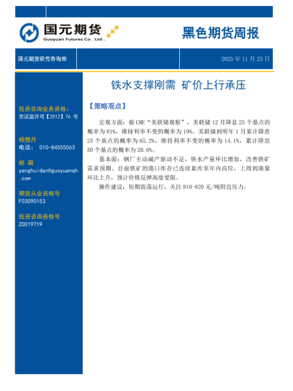 【国元期货】【202511】黑色期货周报_铁水支撑刚需_矿价上行承压-8页 证券期货研究报告